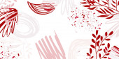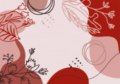 Hand drawn minimal floral abstract background with flower, leaves, geometric form, liquid, blob, and pattern. Stylish poster design for wall decoration
