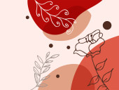 Hand drawn minimal floral abstract background with flower, leaves, geometric form, liquid, blob, and pattern. Stylish poster design for wall decoration