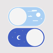 Switch element button for light or dark theme. Digital toggle symbol. Day night mode icon for application. Indicator for smartphone. Frontend control realistic vector illustration on white background.