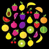 Świeże owoce idealna jagody ikony zestaw na czarnym tle