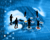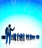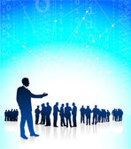 biznes kobieta ceo, przedstawiając jej globalny zespół finansowy