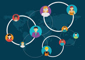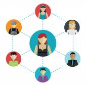 Sieci - społecznych połączeń między ludźmi: biznes, przyjaźni, komunikacja interesów. Ilustracja wektorowa.