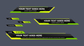 Yellow lower third template. Set of TV banners and bars for news and sport channels, streaming and broadcasting. Collection of lower third for video editing on transparent background.