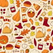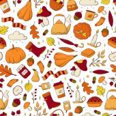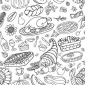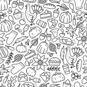Dziękczynienie monochromatyczny wzór bez szwu z ręcznie rysowane elementy. Nadaje się do pakowania, scrapbooking, nadruki tekstylne, kolorowanki dla dzieci, tapety, tła, itp. EPS 10