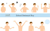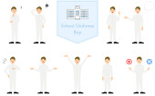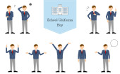 Boy wearing school uniform, posed set, Questioning, embarrassment, pointing, talking, etc.