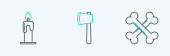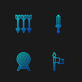 Set line Crossed medieval axes Japanese ninja shuriken and Medieval sword icon. Vector.