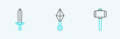 Zdjęcie "Set line Crossed medieval axes Japanese ninja shuriken and Medieval sword icon. Vector." może być wykorzystywane do celów osobistych i komercyjnych zgodnie z warunkami zakupionej licencji Royalty-free. Obraz jest dostępny do pobrania w jakości wysokiej rozdzielczości do 5760x3840.