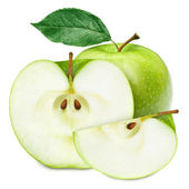 Jabłko. Zielone jabłka z zielonymi liśćmi i plasterkiem jabłka - ilustracja wektora. Wektor realistyczny