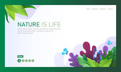 Ilustracja wektora przyrody pełna kwiatów i liści dla strony lądowania