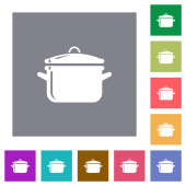 Steaming pot flat white icons on round color backgrounds. 17 background color variations are included.