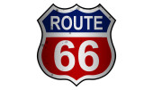 US route 66 sign, shield sign with route number and text, 3d rendering