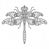 Dekoracyjny wektor ważka na białym tle. Symbol owada Abstract de sign for mug, t shirt, phone case. Idealny do druku, plakatów, t-shirtów, tekstyliów.