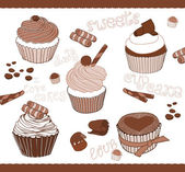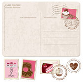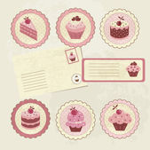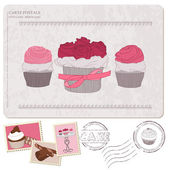 zestaw babeczki na stare pocztówki, ze znaczkami - projekt i sc