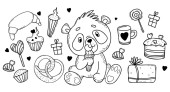 Ciasto. Kosz śmietankowy z kijem cynamonowym. Rysowanie ręczne wektora w stylu bazgrołów. Do dekoracji wakacyjnych, projektowania, dekoracji i drukowania