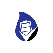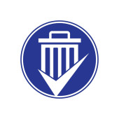 Sprawdź wzór logo wektora zrzutu śmieci. Logo wektora ikony zaznaczyć bin.