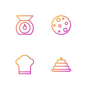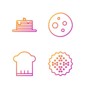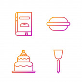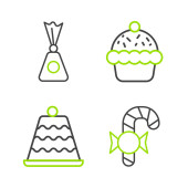 Ustaw linię Lody w misce Macaron ciastko i opakowanie Candy dla ikony słodycze. Wektor.