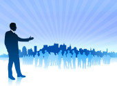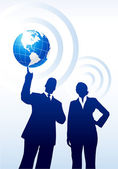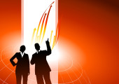 biznesmen i kobieta stojąc na flary strzałka między