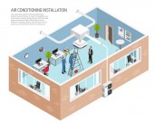 Infografika izometryczna oczyszczania powietrza ze sprzętem klimatyzacyjnym i wentylacyjnym oraz systemami domowymi Ilustracja wektora 3D