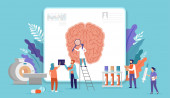 Zdjęcie "Naukowcy laboratoryjni badają ludzki mózg i pracują zespołowo. Ilustracja wektora" może być wykorzystywane do celów osobistych i komercyjnych zgodnie z warunkami zakupionej licencji Royalty-free. Obraz jest dostępny do pobrania w jakości wysokiej rozdzielczości do 5760x3840.