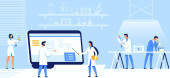 Naukowcy laboratoryjni badają ludzki mózg i pracują zespołowo. Ilustracja wektora