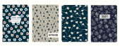 Zestaw szablonów okładek z ręcznie rysowanymi kwiatami, gałęziami, liśćmi. Bazując na płynnych wzorach. Tła do notatników, notatników, pamiętników. Nagłówki izolowane i wymienne