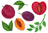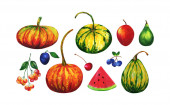 Zestaw akwareli ręcznie malowane egzotyczne owocy.Owoce i warzywa.