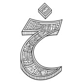 Ręcznie rysowane czcionki arabskie Nun w stylu zentangle