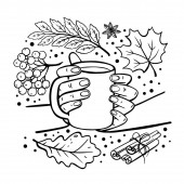 Witaj, ręcznie pisane litery, słodka ilustracja z duchem, gotowanie świątecznej kolacji z dynią, bazgroły