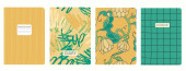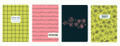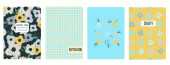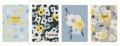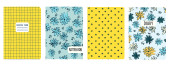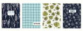 Szablony wektorowe okładki oparte na bezszwowych wzorach z ręcznie rysowanymi kwiatami Echinacea. Kontekst zeszytów szkolnych, zeszytów, pamiętników