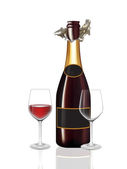 Otworzyć butelkę wina, szkło wina i moszczu winnego, ilustracji wektorowych