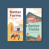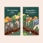 Szablon Instagrama z koncepcją azjatyckiego rolnika, styl akwareli