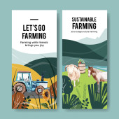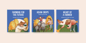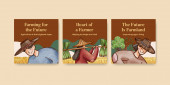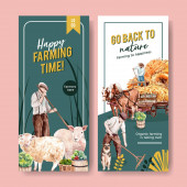 Szablon sztandaru z koncepcją azjatyckiego rolnika, akwarela styl