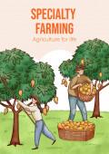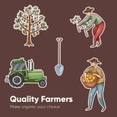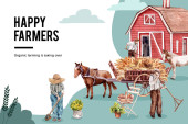 Szablon naklejki z koncepcją azjatyckiego rolnika, akwarela styl