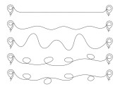 Hulajnoga z punktem startowym. Hulajnoga Eco jazdy na trasie kropkowanej z kolekcji wskaźników map pin. Wektor izolowany na białym.