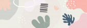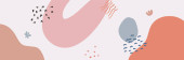 Beżowy dźwięk ziemi boho kwiatowy strony narysowane minimalne organiczne kolorowe tło baner projektu. Linia sztuki kwiat i liście botaniczne, kształty organiczne. Tło wektorowe plakatu, strony internetowej i opakowania.