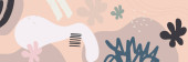 Beżowy dźwięk ziemi boho kwiatowy strony narysowane minimalne organiczne kolorowe tło baner projektu. Linia sztuki kwiat i liście botaniczne, kształty organiczne. Tło wektorowe plakatu, strony internetowej i opakowania.