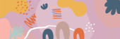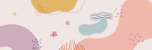 Piękny pastelowy szablon banera social media z minimalną abstrakcyjną kompozycją organicznych kształtów w modnym współczesnym stylu kolażu. Nowoczesne kolorowe wektor ręcznie rysowane kształty organiczne i tekstury