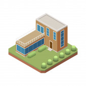 Etap budowy domu ikona izometryczna z niedokończonym budynku i materiałów 3D wektor ilustracji