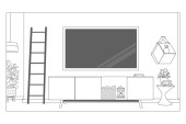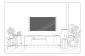 TV Wall Mount na linii szafy rysunek projekt wnętrz ręcznie szkic ilustracja