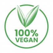 100% Weganie grawerowane okrągłe ikona z 2 Zielone liście izolowane na białym tle