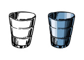 Vodka shot glass on white background. Cartoon sketch graphic design. Doodle style. Colored hand drawn image. Party drink concept for restaurant, cafe, party. Freehand drawing style