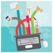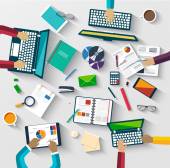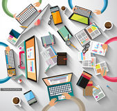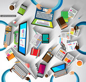 Grupa ludzi biznesu działa za pomocą urządzeń cyfrowych