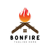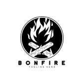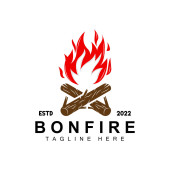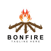 Projektowanie logo ogniska, Camping Vector, Wood Fire and Forest Design