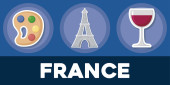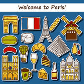 Witamy we Francji Biuro podróży broszura francuska kultura i symbole architektura i kuchnia wektor i Wieża Eiffla wino i ser croissant i śniadanie malowanie kawy. Broszura biura podróży