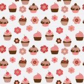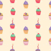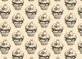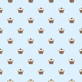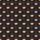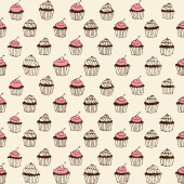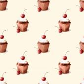 Ciastko z wiśni i czereśni oraz krem ręcznie rysowane szkic na różowym tle. wektor wzór