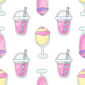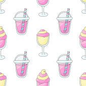 Kolorowanki koktajle mleczne płynny wzór. Słodki wzór z zimnym deserem. Drukuj na wzór tkaniny, tkaniny, tkaniny, tapety