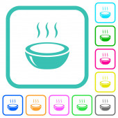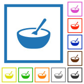 Miska zupy z łyżeczką proste ikony w kolorze zaokrąglone kwadratowe ramki na białym tle
