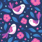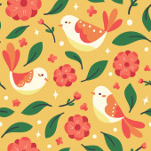bezszwowy wzór kwiatowy z uroczymi ptakami. ilustracja internetowa
