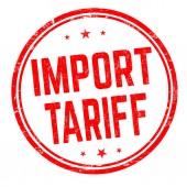 Żółty kolor znak transportu ze słowem taryfy handlowej na białym tle