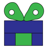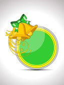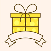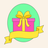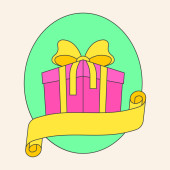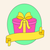 Odizolowane pudełko z pustą wstążką na zielonym tle owalnym.